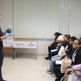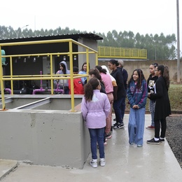 Antes de conhecer as etapas do tratamento de efluentes, a coordenadora da Sesamm, Sirlei Brignoli, fez uma breve explicação sobre o processo apresentando amostras da água recém chegada à estação e o resultado final, quando é devolvida à natureza. A apresentação também reforçou que ações realizadas em casa, como o descarte de objetos e despejo de resíduos na rede de esgoto, podem parecer inocentes, mas prejudicam todo o tratamento. Após a explicação, os estudantes puderam conferir de perto, pela primeira vez, como é o funcionamento de uma ETE e a sua importância para garantir disponibilidade de água no futuro.