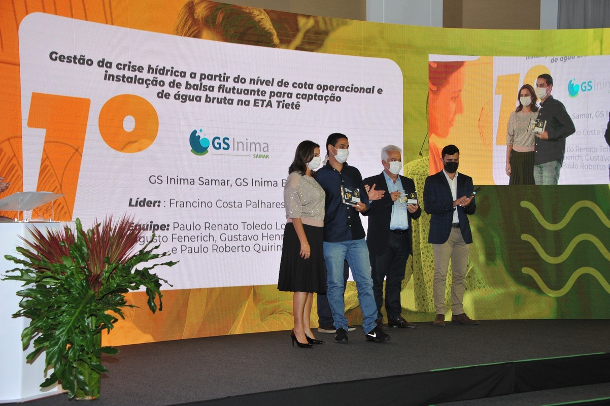 O projeto vitorioso Gestão da crise hídrica a partir do nível de cota operacional e instalação de balsa flutuante para captação de água bruta na ETA Tietê rendeu o primeiro lugar na categoria Gestão e Governança para a equipe formada por Francino Costa Palhares da Silva (líder), Gustavo Henrique Assis Borim, Rafael Augusto Fenerich e Paulo Renato Toledo Lourencini, da GS Inima Samar, de Araçatuba (SP). A empresa também ocupou o segundo lugar na categoria Sociedade e Consumidores com o projeto Saneamento Rural em Jacutinga, com ações de apoio à comunidade do bairro rural de Araçatuba para gestão dos seus sistemas de abastecimento de água e esgotamento sanitário. A equipe criadora do projeto é formada por Francino Costa Palhares da Silva (líder), Gustavo Henrique Assis Borim, Giuliana Carolina Talamini, Andrea Barreto dos Santos Silva e Isadora Natal Paludetto.